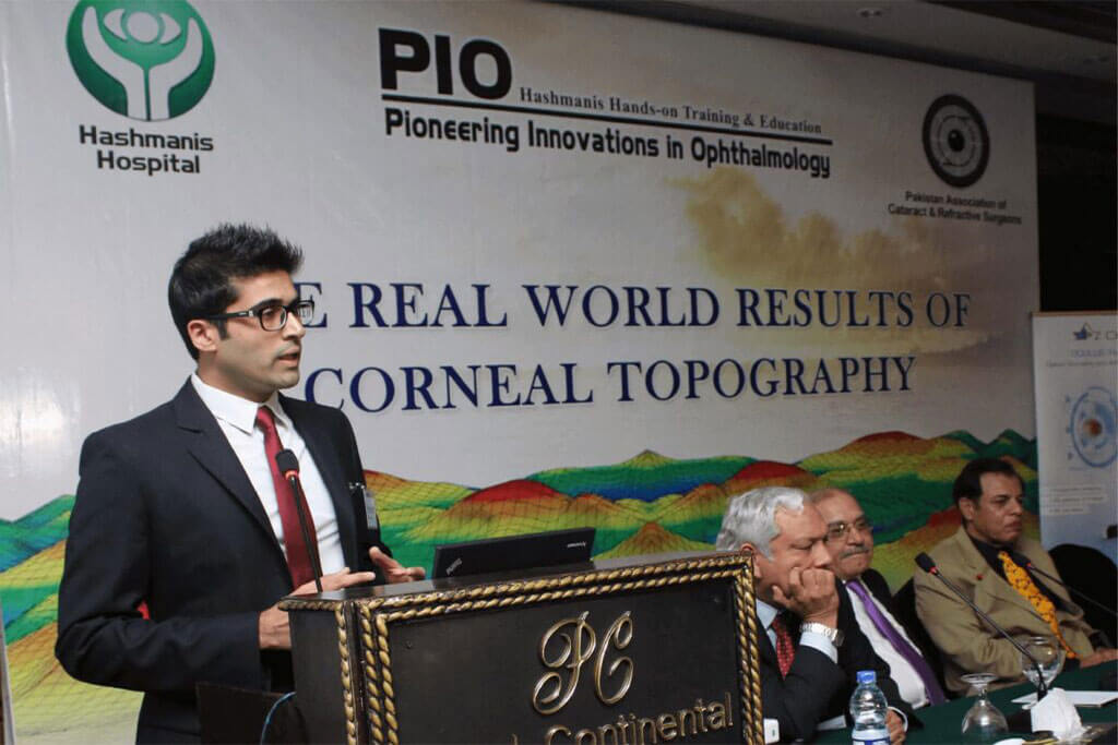 The first Pioneering Innovations in Ophthalmology (PIO) conference was arranged on 14th of January 2017 for the very first time by Hashmanis Foundation to bring forth an opportunity and a platform to learn about new technological advancement and modern innovations in the realm of ophthalmology. This novel event was ennobled by the presence of well-versed ophthalmologists as they spoke about the “Real World Results of Corneal Topography”. The aspiring students of the field learned about the consequences of corneal topography and availed a promising chance to interact with numerous leading ophthalmologists.